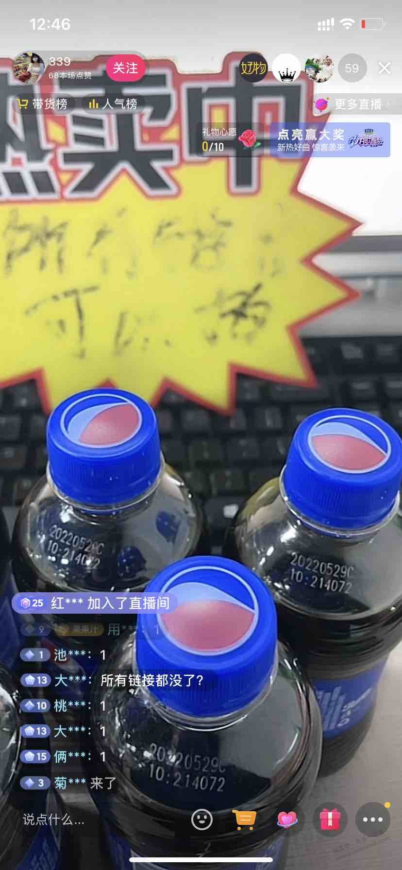买可乐去抖音,经常有3.9买6瓶可乐的直播间,今晚有个发6瓶百事,进去看看就明白了,他家所有链接拍下都发可乐,只能一单,抖音搜13861766