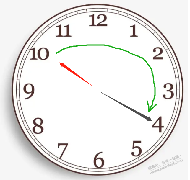 时针和分针同时指向10点,分针顺时针转动三周半,10:20