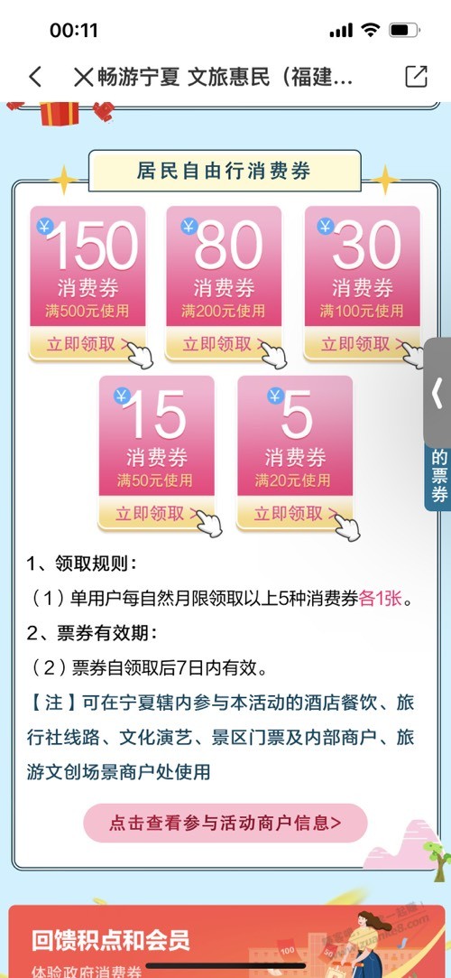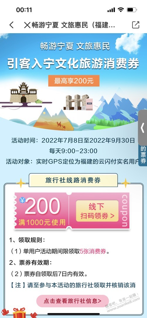 福建作为宁夏帮扶省份,宁夏还专门在云闪付给福建人民发放文旅优惠券,虽然也是需要消费但是至少心里有点爽 别人没有 哈哈