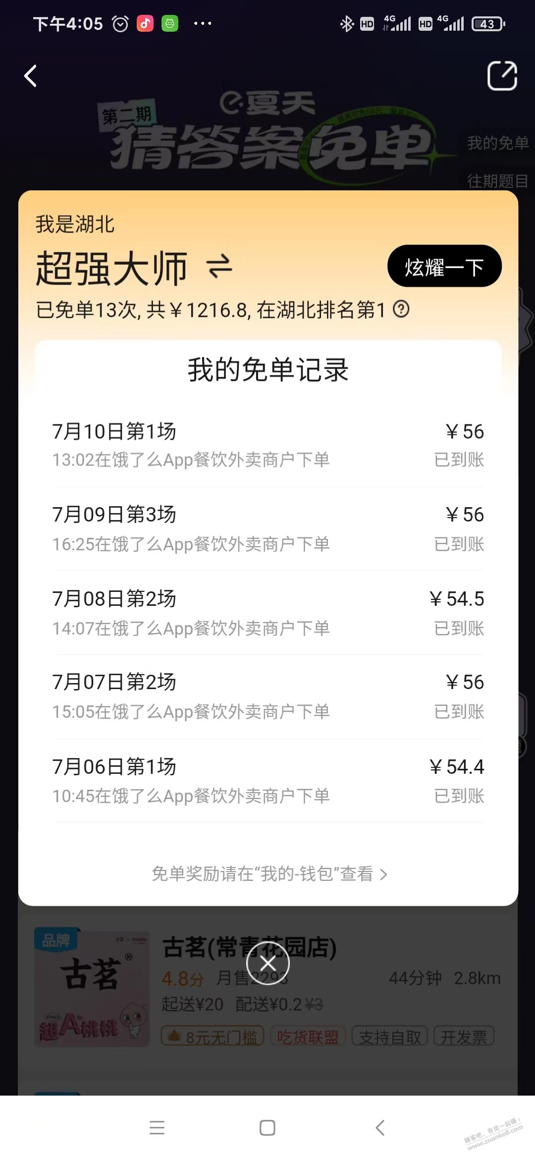 饿了么之前天天能免单的号 今天好像都拥挤了!