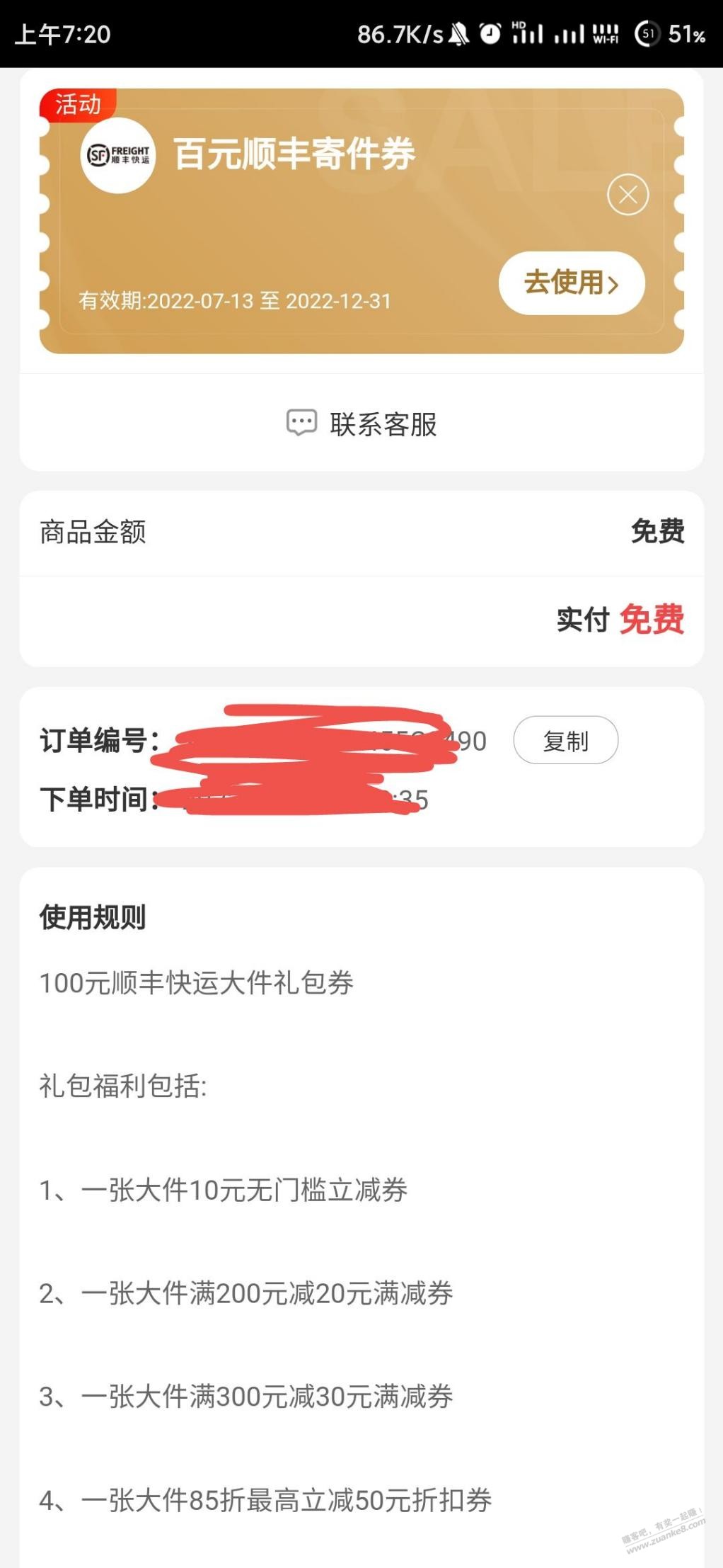 中了两顺丰大礼包 10元无门槛