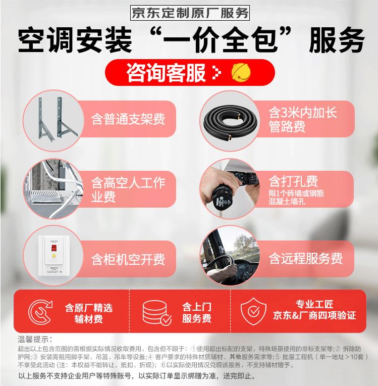 包含高空费 空开费 支架费 打孔费 管道加长3米内免费
