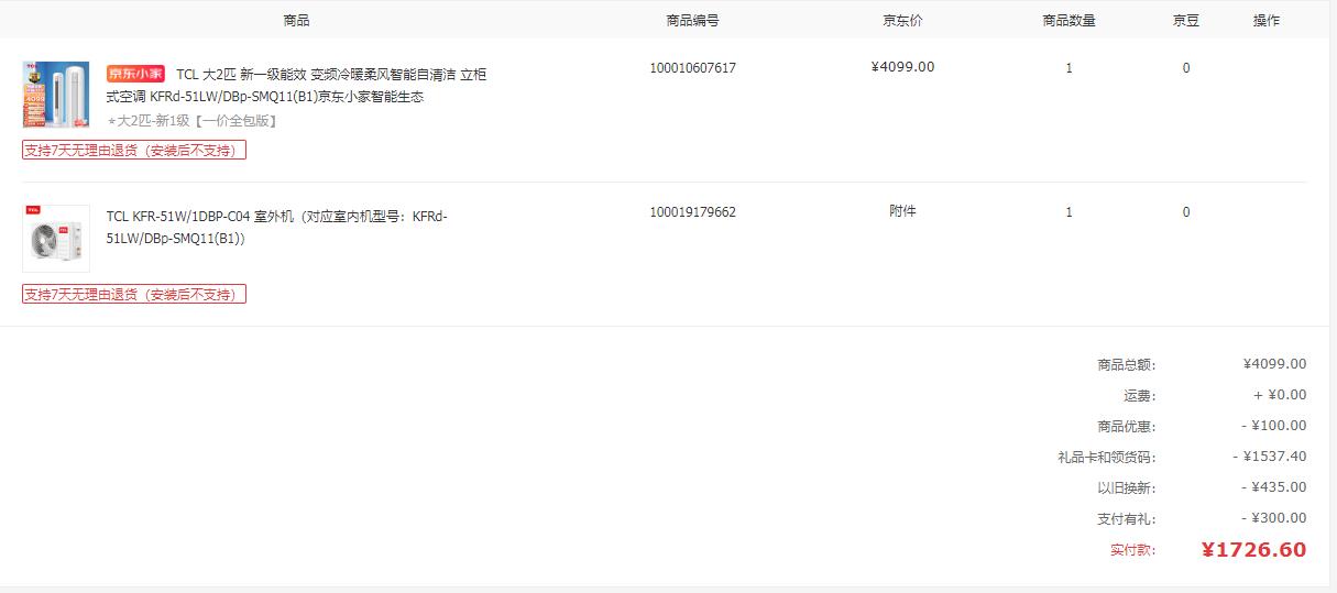 TCL空调 2P柜机好价(一口价全包版) 3200多