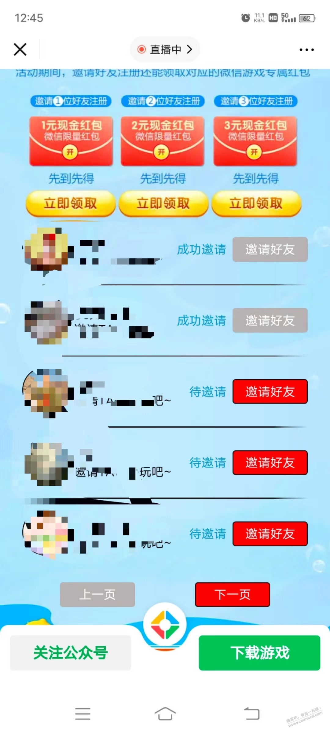 腾讯游戏,每个V.x至少1+3元毛! 2022年 8月 13日 12:58 作者 kkkkn https://game.weixin.qq.com/cgi-bin/actnew/newportalact/167391/eoZ6Yz1NXzml-lXzsD_SMg/main_page?act_id=167391&k=eoZ6Yz1NXzml-lXzsD_SMg&pid=main_page¬iceid=96348490&from_id=3 VX号多的,上面分享链接进入拉到下面发邀请(图1),手机上有装腾讯先锋的直接注册登录游戏,回来邀请链接领1元,再到上面分享链接领1元,还可以领邀请奖励。我已经撸了五个号了,全是1+3!