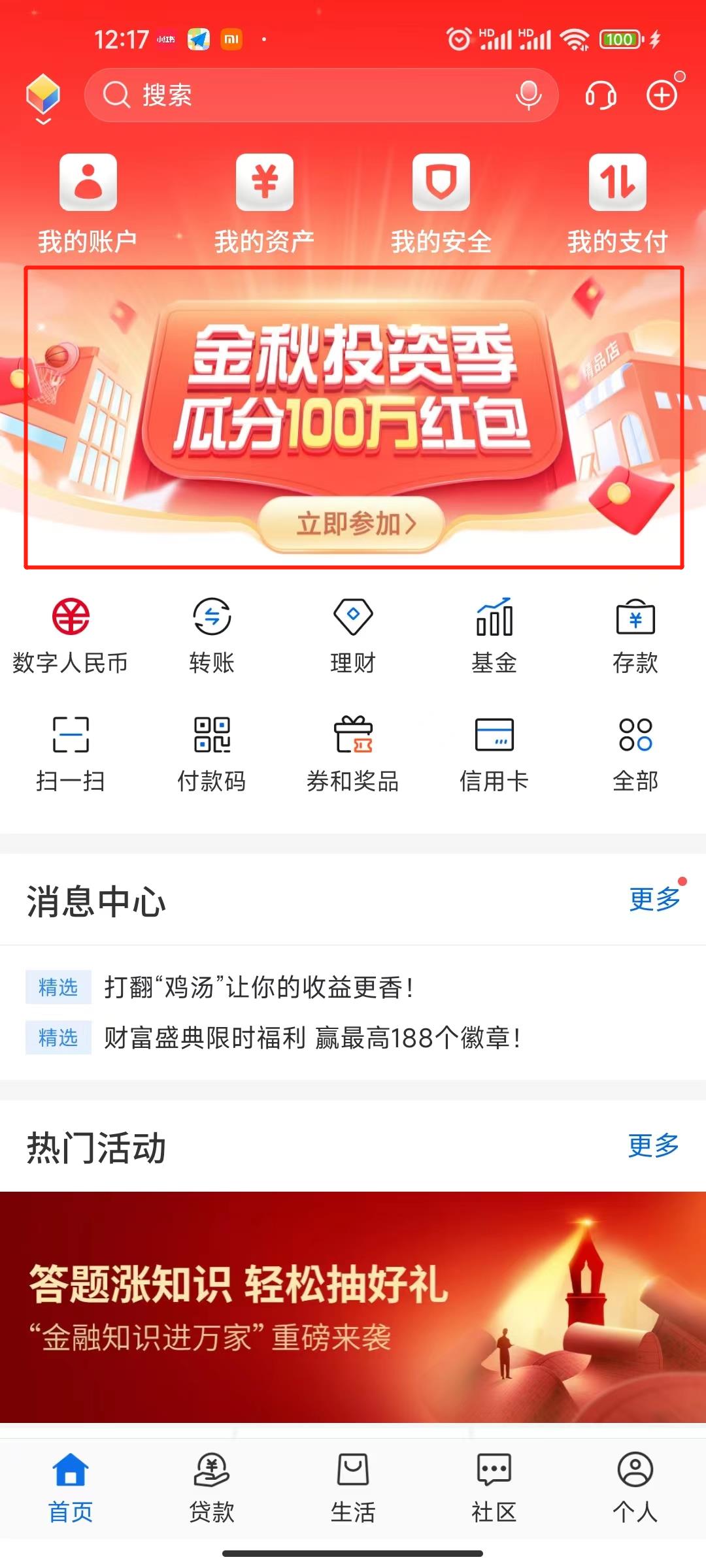亲测3元现金 交行参与金秋投资季瓜分100万红包!