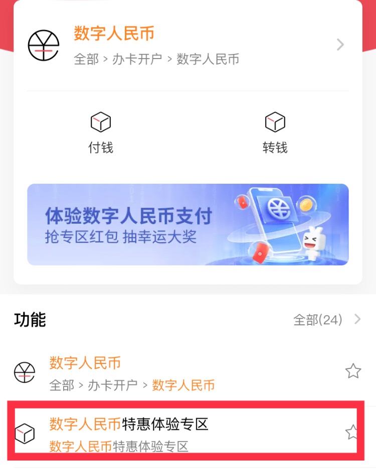 Rt,搜索数字人民币,点数字人民币特惠体验专区。进入抽取红包。刚中了5元