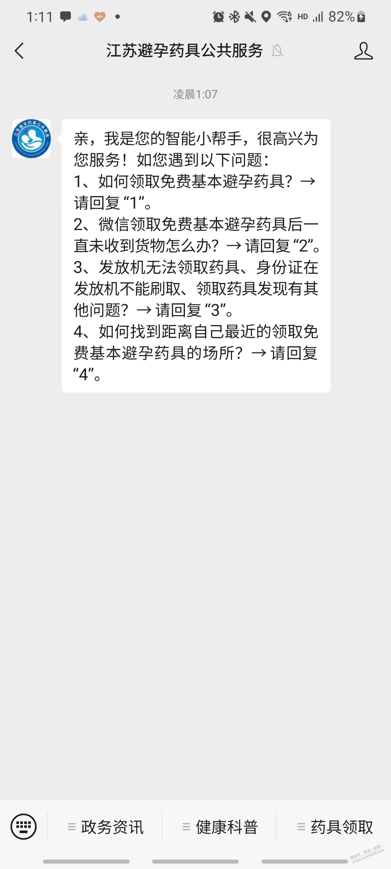 关注江苏避孕药具公共服务,注册下,免费领三盒,