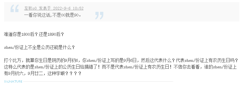 还有人家这位吧友回复说shen/份证上都是阳历生日,楼主的回复是人家太年轻的意思吗?