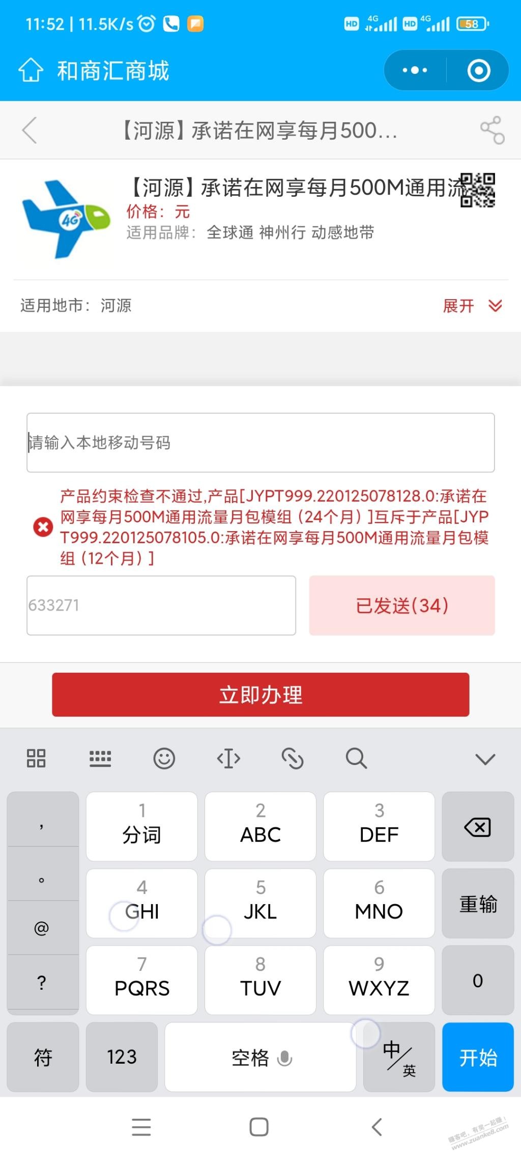 血亏。。上次在VX服务充值流量里开了送一年的,冲突了
