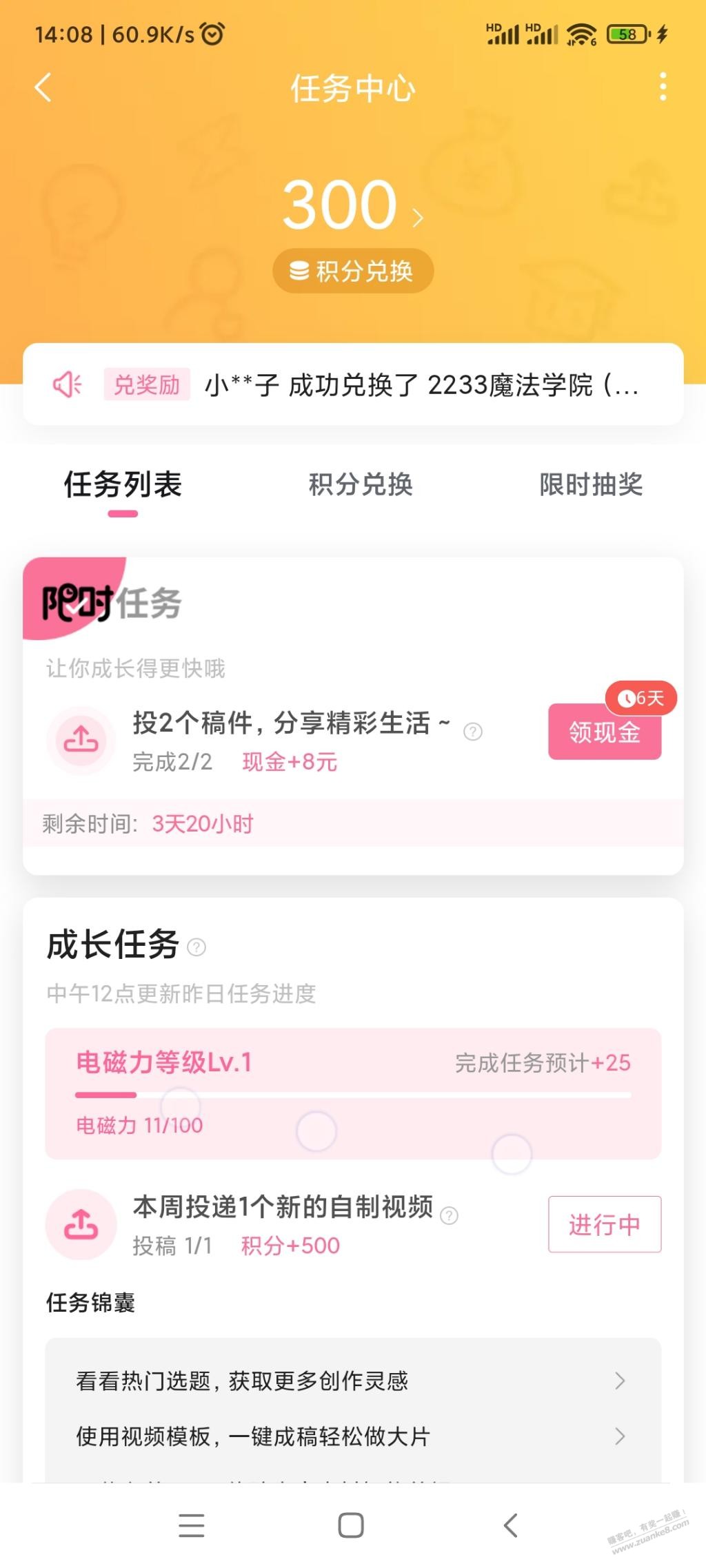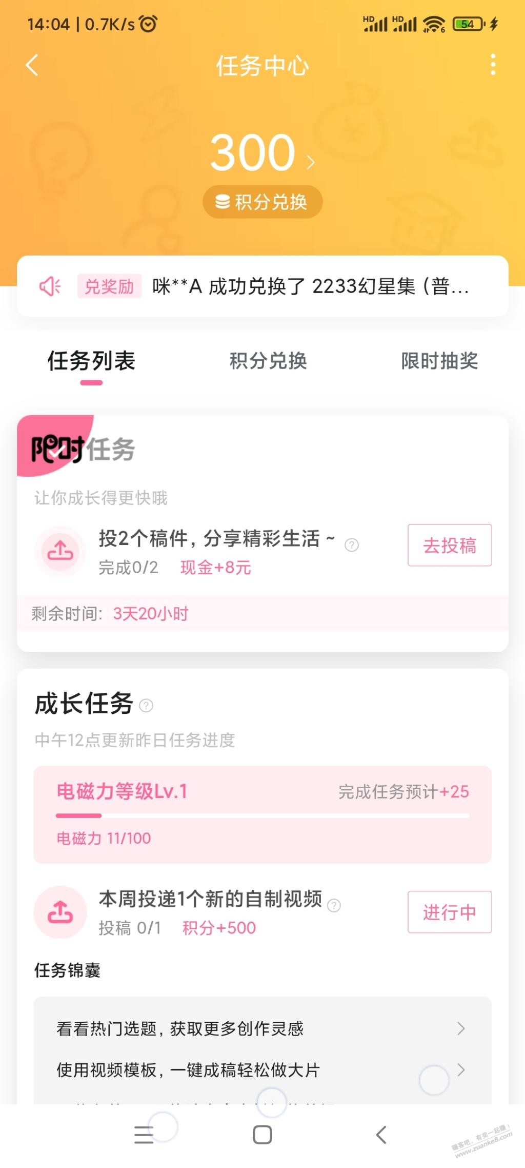 哔哩哔哩8元现金毛 2022年 9月 6日 14:12 作者 kkkkn 我的,限时福利,限时任务,发布两个几秒的视频审核通过后领取8元现金,很简单几分钟完成。没有任务的,建议也随便发个视频,过一两个月应该就有任务了