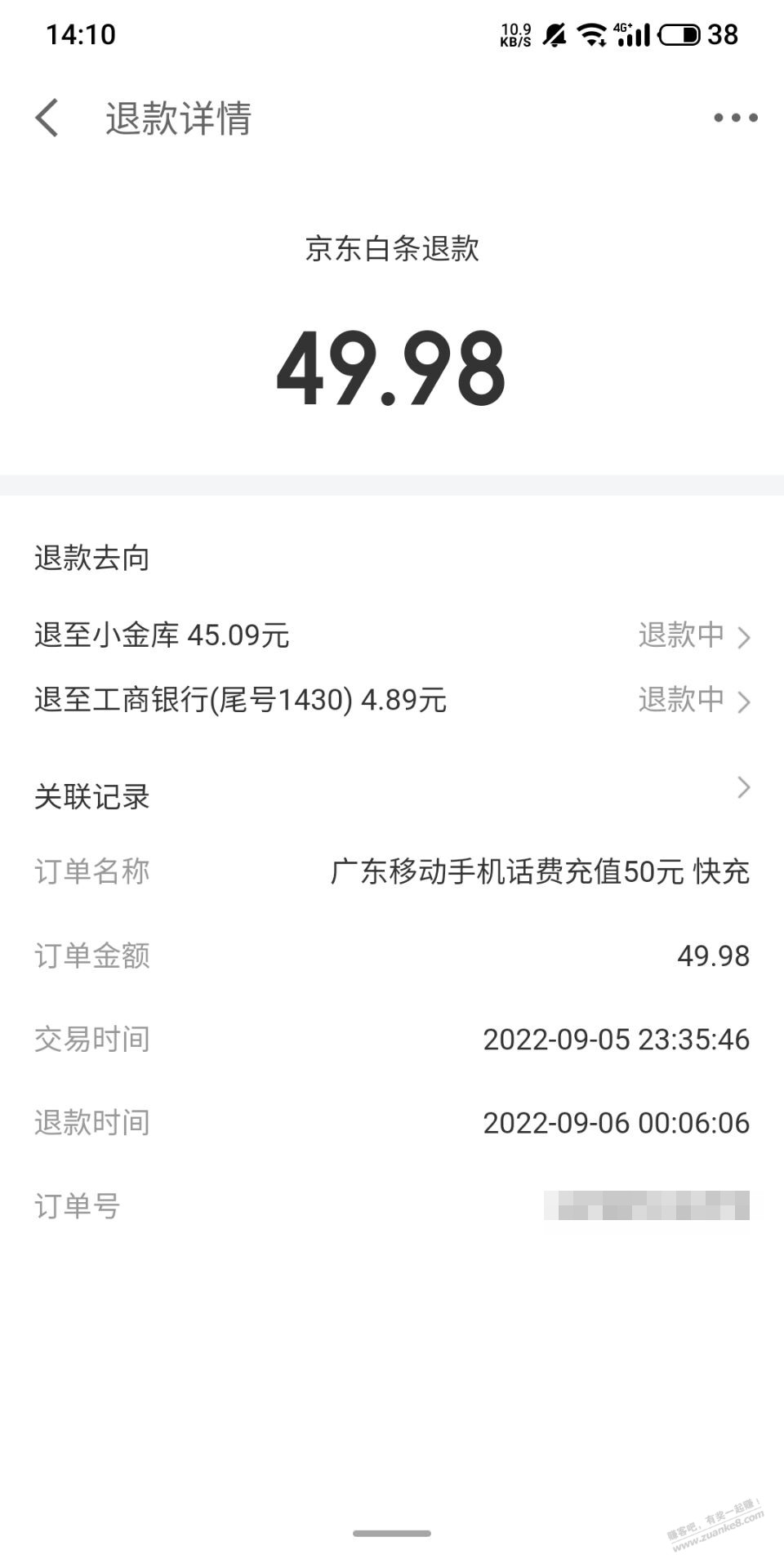刚刚查看已退款,退回小金库
