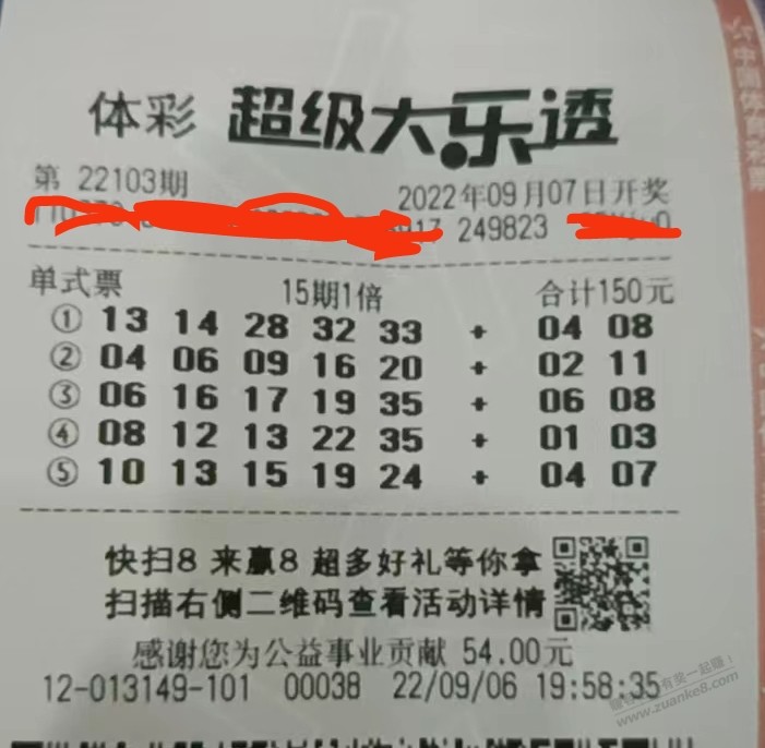 150元,快乐48天 2022年 9月 6日 22:40 作者 kkkkn 不抽烟不喝酒,每天躺平,也就买个彩票,等待开奖的时候能让我快乐下,150块钱,快乐48天,值 追加了15期,因为国庆彩票也停机,估计开完奖要到9月24号左右了