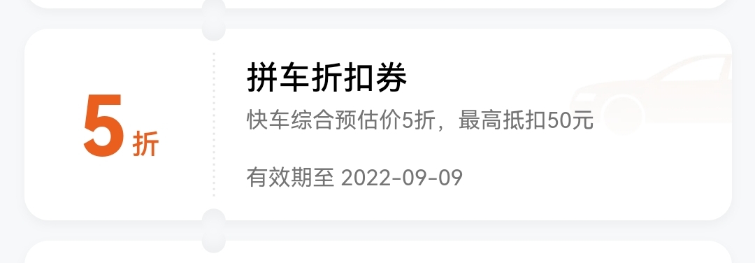 速度 滴滴 5折 抵扣50 中秋出游 必领 2022年 9月 7日 11:42 作者 kkkkn 扫码领取,5折券 看不到券的 我的 优惠券 更多里面 中秋出游 必领 and 没用过同程打车的可以领取无门槛多号多鲁 聚合一键叫车的平台