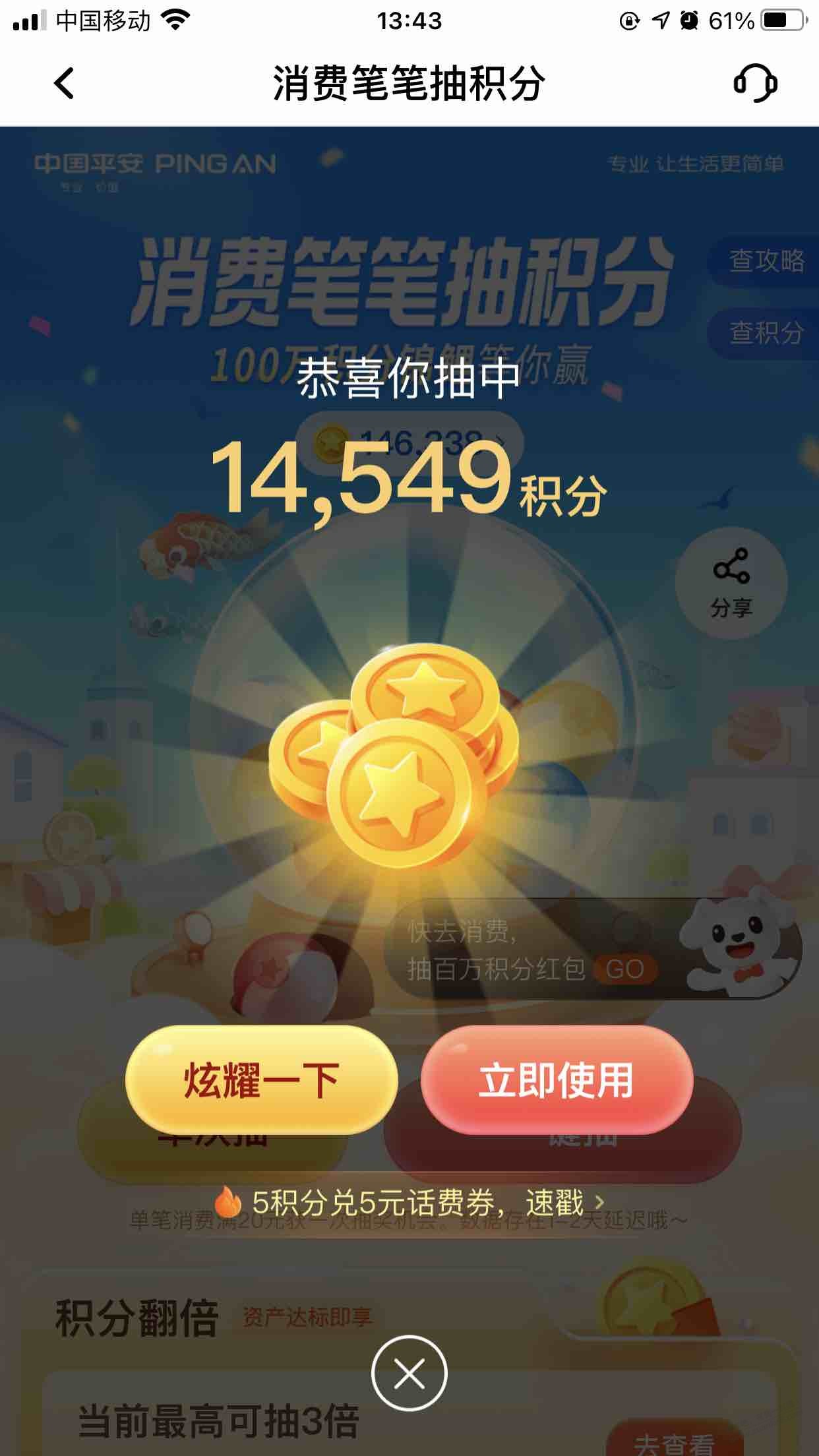 平安口袋,抽积分,水了