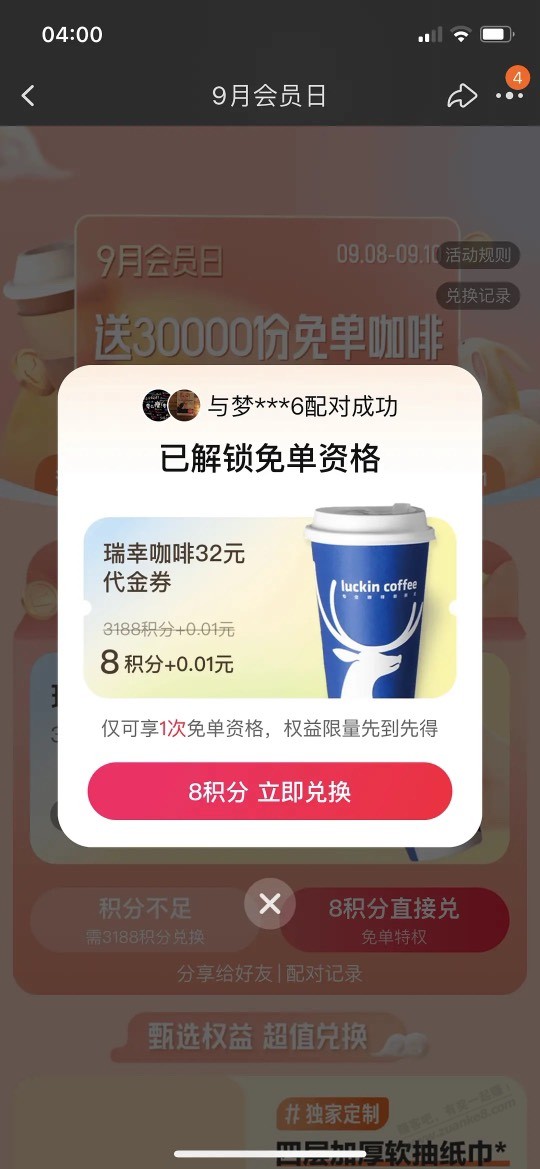 瑞幸大毛,一分购32元饮品券 2022年 9月 9日 04:24 作者 kkkkn https://pages.tmall.com/wow/a/act/tmall/dailygroup/16044/16468/wupr?ut_sk=1.X4GD/QHVu+gDABfLTm5dQGx4_21380790_1662667200136.Copy.tmall_point&wh_pid=daily-453846&vipShareNav=true&sourceType=other&vipToken=QN2xwNIcfZ/eLaR7CuIVD1b4ub4KhR64mfOFwwb6zbhMrtsrF3it4i8RUFn1aaH1&suid=52D10FCD-0E32-437A-B1DD-6873B77A0009&un=8d6fca08f8bd1d8103a1fcf2866a2128&share_crt_v=1&un_site=0&spm=a2159r.13376460.0.0&sp_abtk=common_tmall_point_commonInfo&sp_tk=WjR6TjJFUDR1Sks=&cpp=1&shareurl=true&short_name=h.U1y1SRa配对成功即可