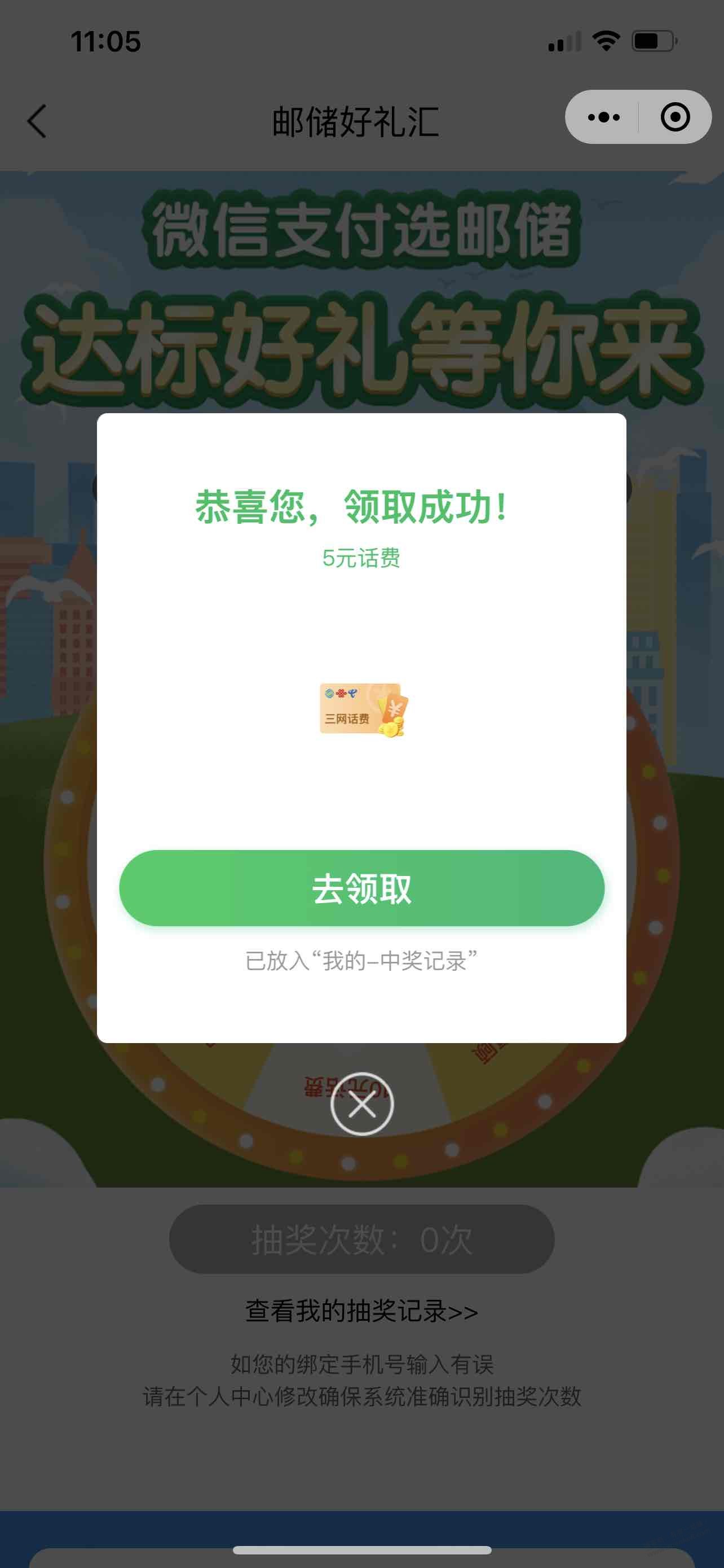邮储好礼汇 可能有水 全国中5元,广西区10元