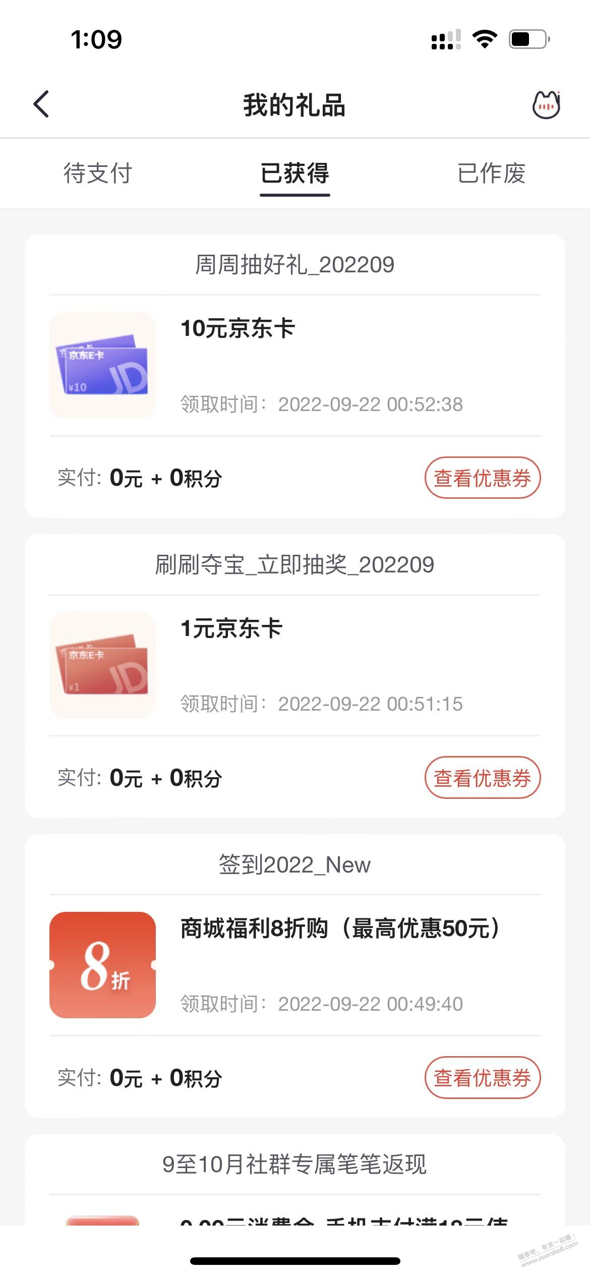 掌上生活扫码入刷刷宝抽奖一次 下滑有个周周抽好礼抽奖一次 自测中了11e卡