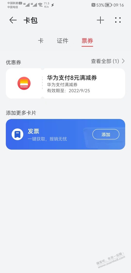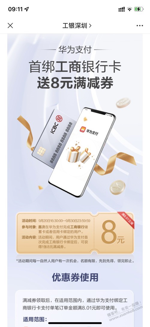 华为pay绑卡送8元优惠券,绑定过的可以解绑重新绑定