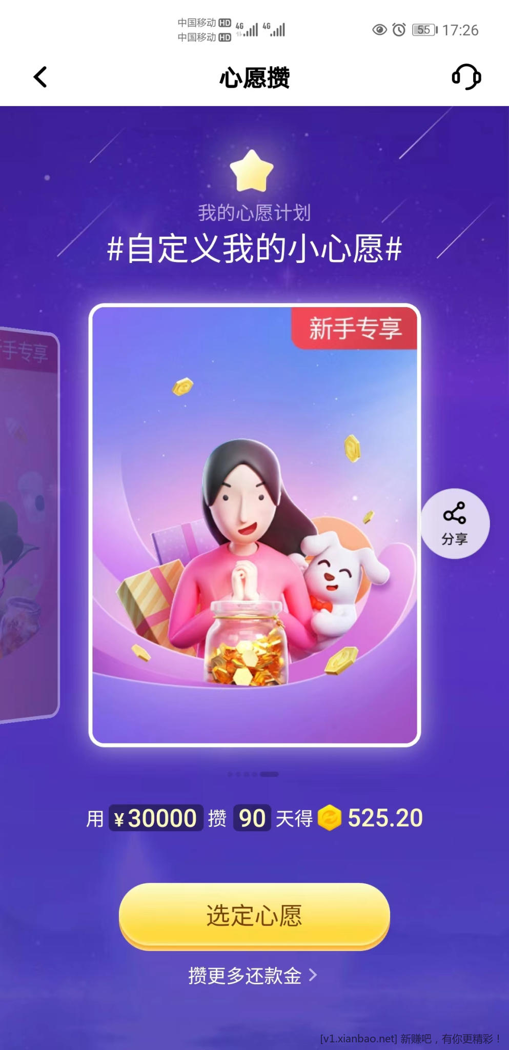 平安APP 直接搜 心愿攒 白户收益高。还款金来着,需要XYK还款用掉