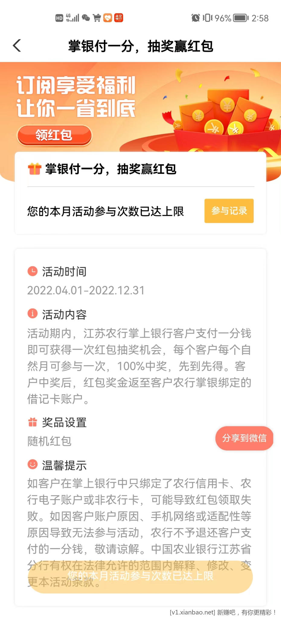 生活——热门活动——红包奖励——一分支付抽红包,100%中奖