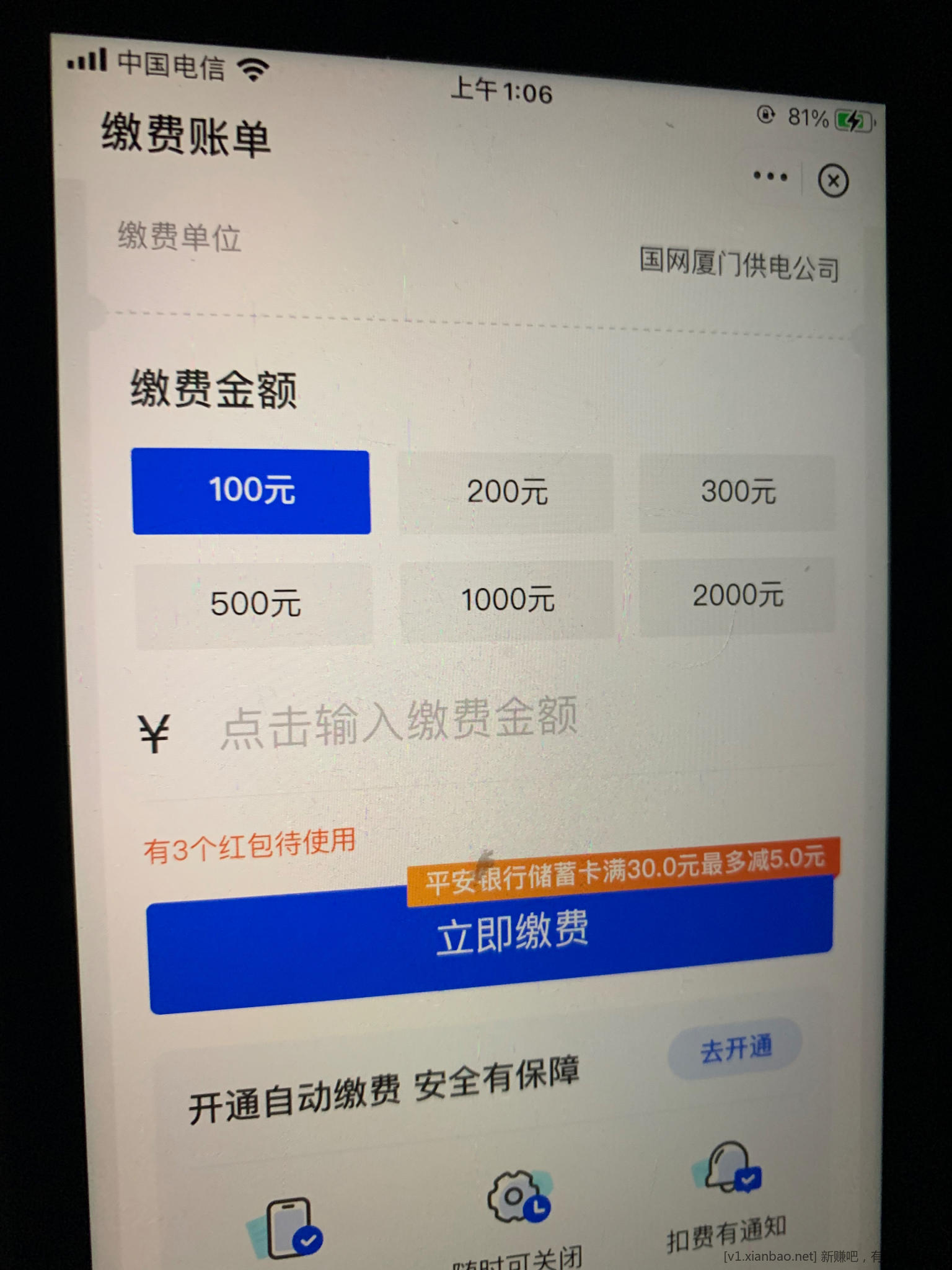 缴费满30随机立减最高5.