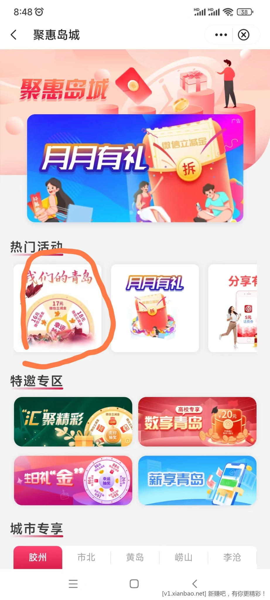 中行APP,生活,为您优选里的汇聚岛城,我们的青岛,刚中6元,4元储蓄卡,2元信用卡