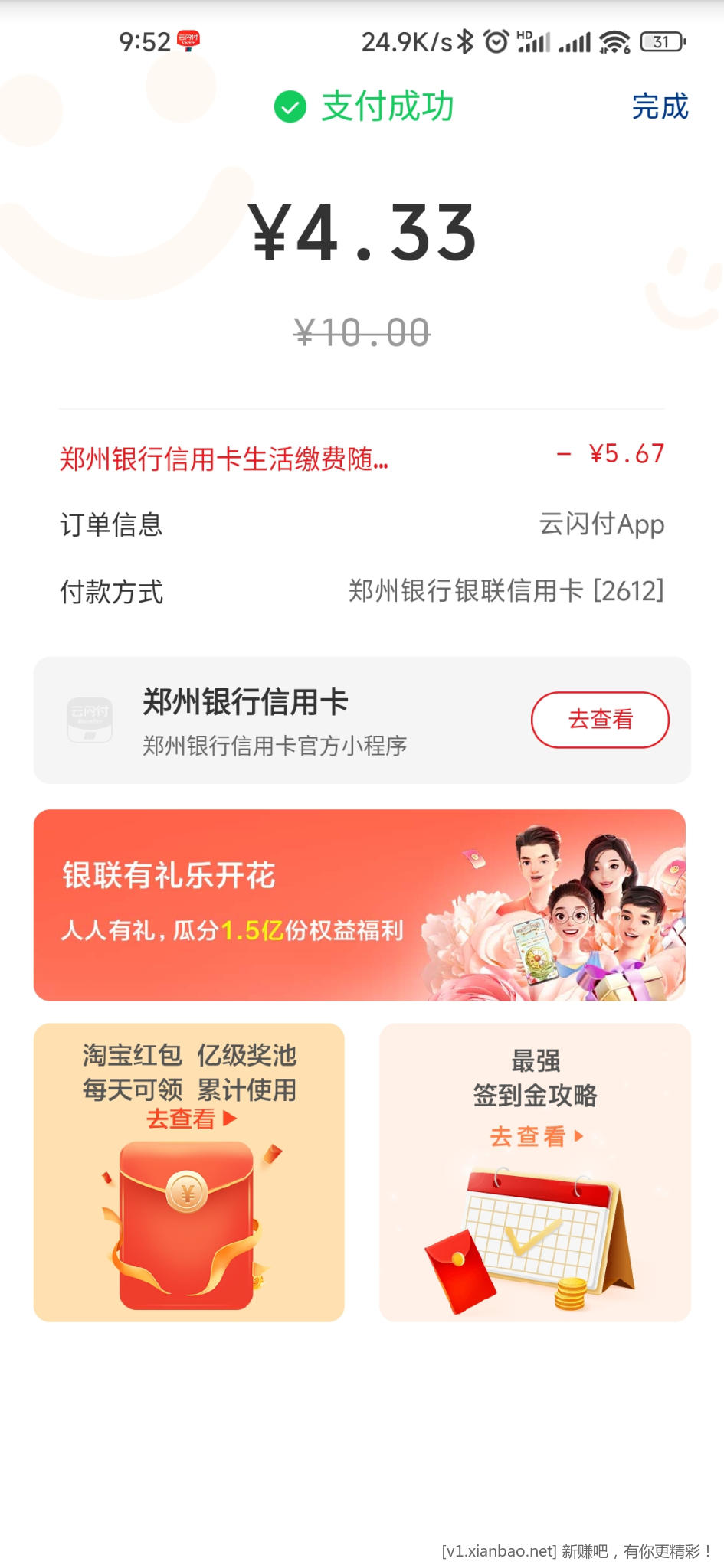 郑州银行信用卡大毛,冲,ysf缴费10减3次