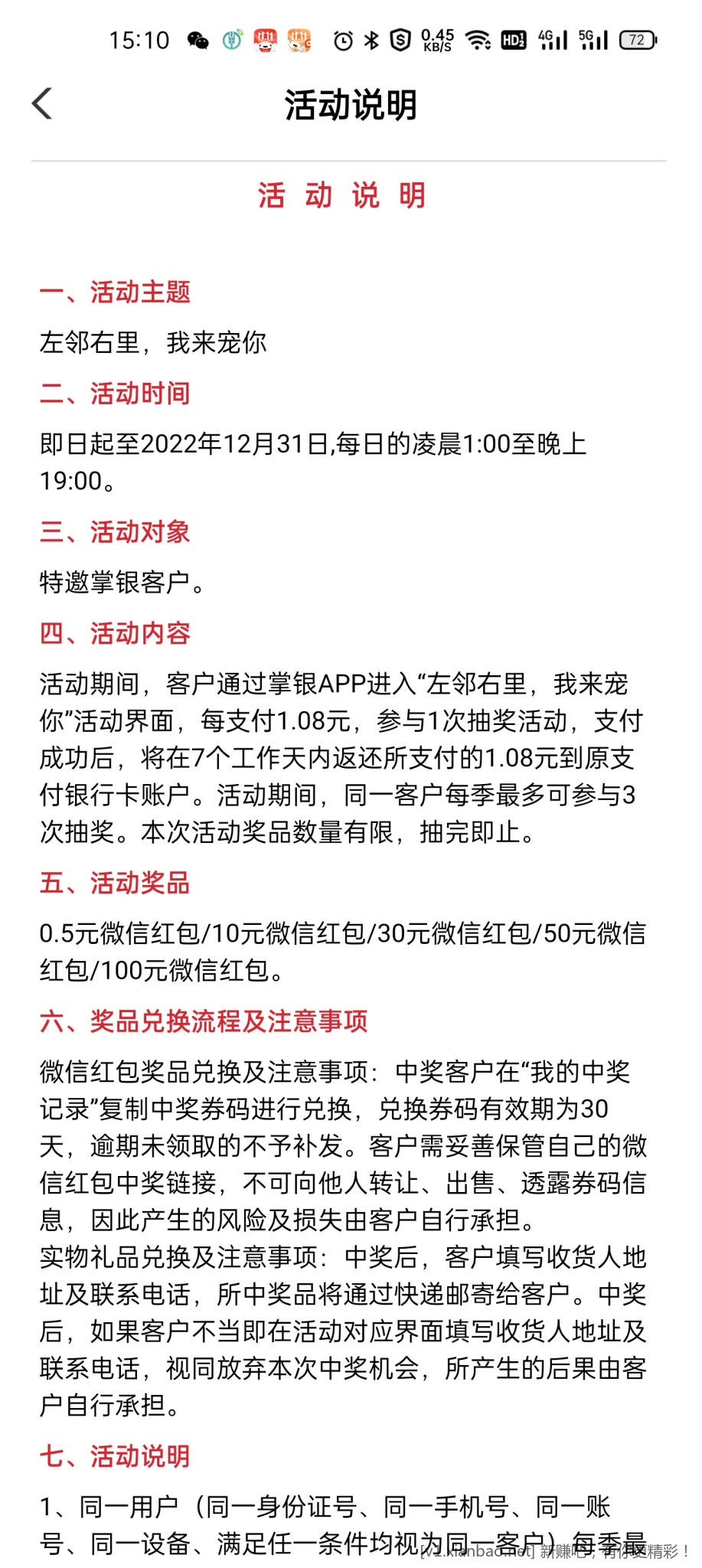 【广东农行】100元VX红包等您拿!受邀客户当日连续3次参与本活动,即可中奖,最高100元VX红包!先到先得,抢完即止!复制¥S_01ADzm090cEP0mK¥后打开农行掌银即可参与!退订请回qx1