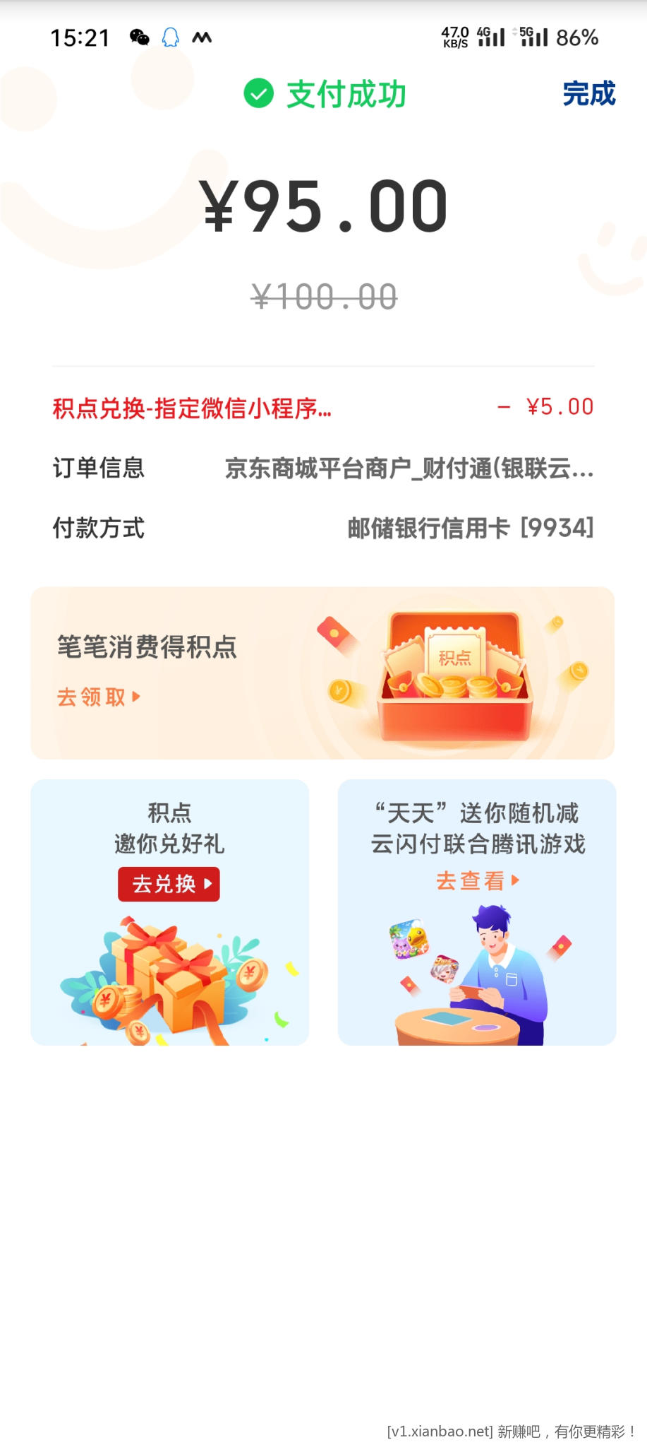 前提你有ysf积分,兑换后-5元 记得是VX小程序调出来ysf付款