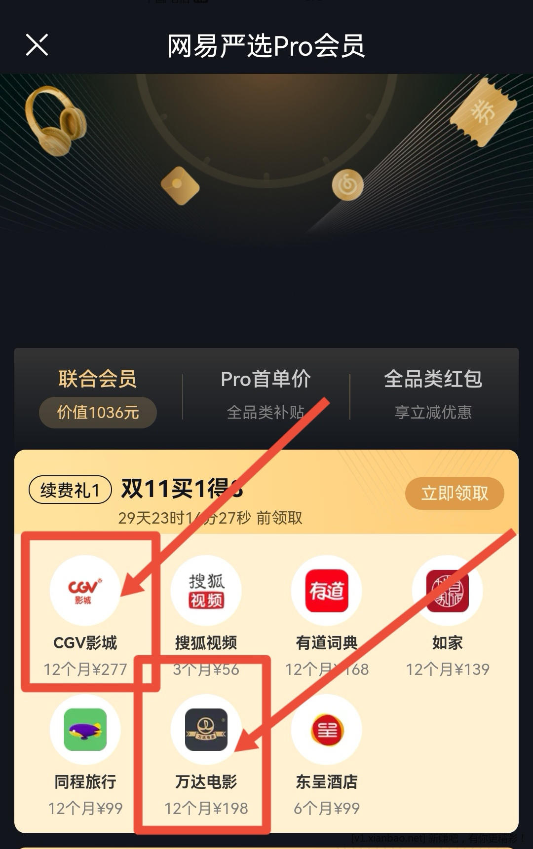 网易会员续费送12个月,CGV+万达电影,这2个年卡一起能卖多少钱呢?